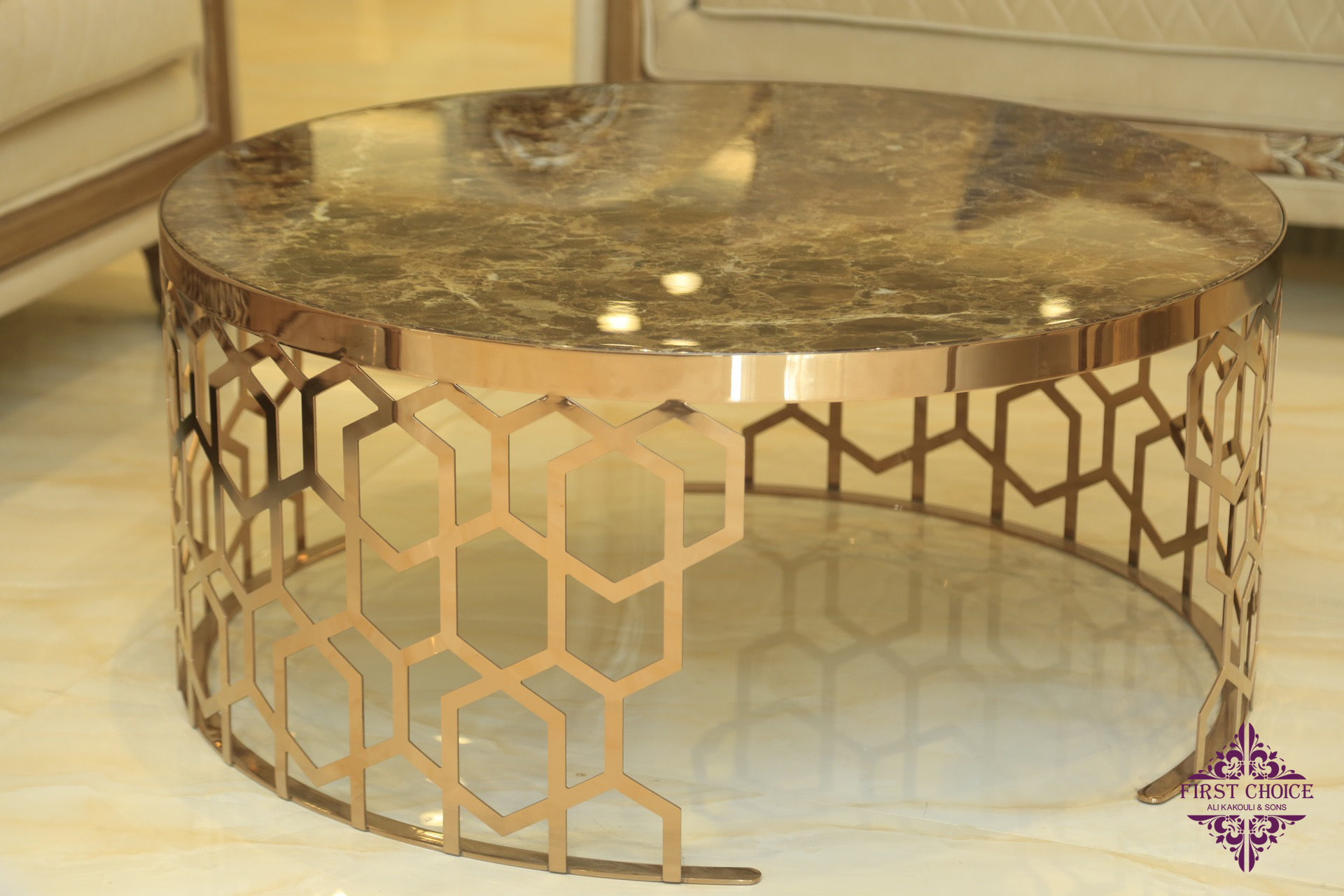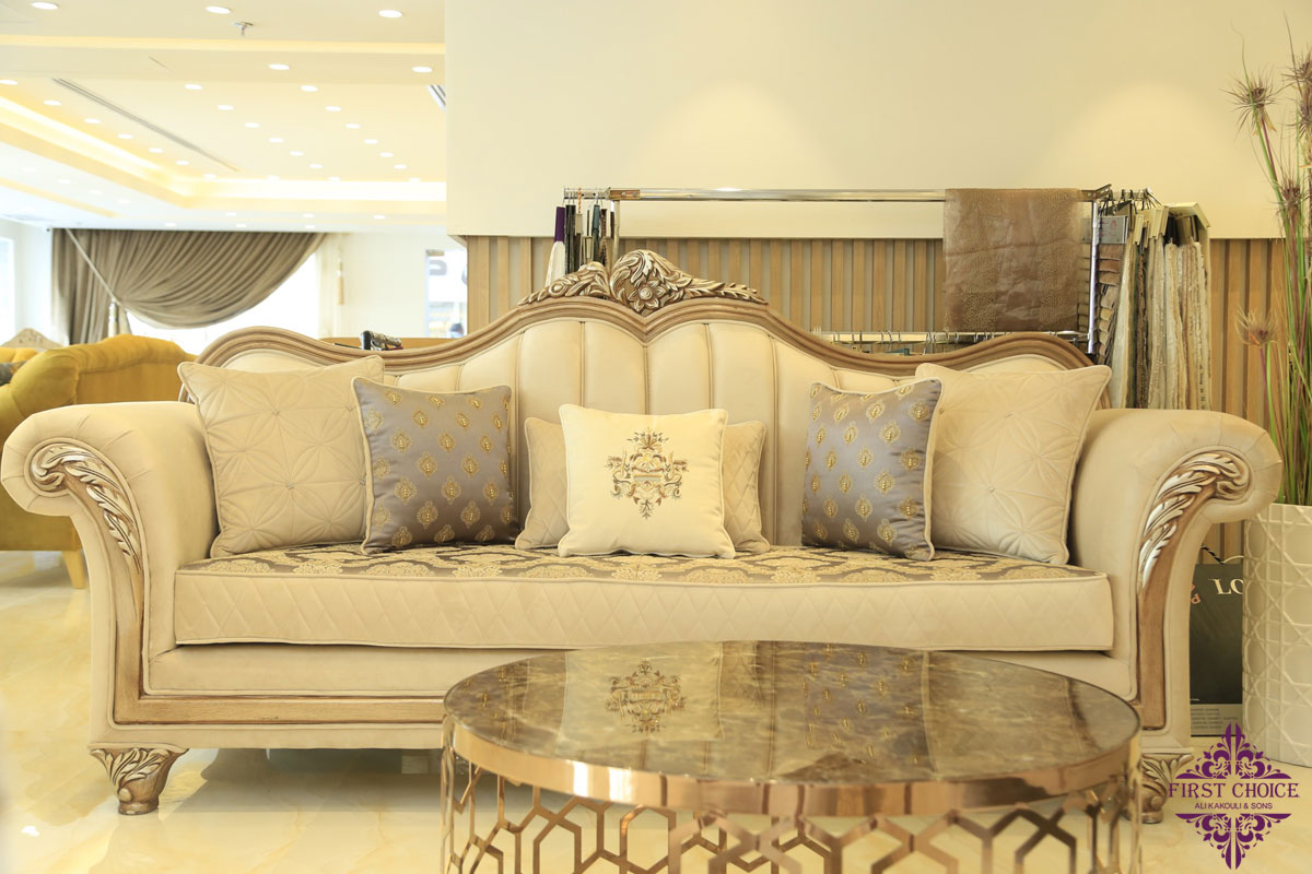 This type of sofas' always looks nice and elegant for big villas and larg areas, in First Choice, we do specially designs that satisfy your needs, and can appear the royality you look in to your Villa.